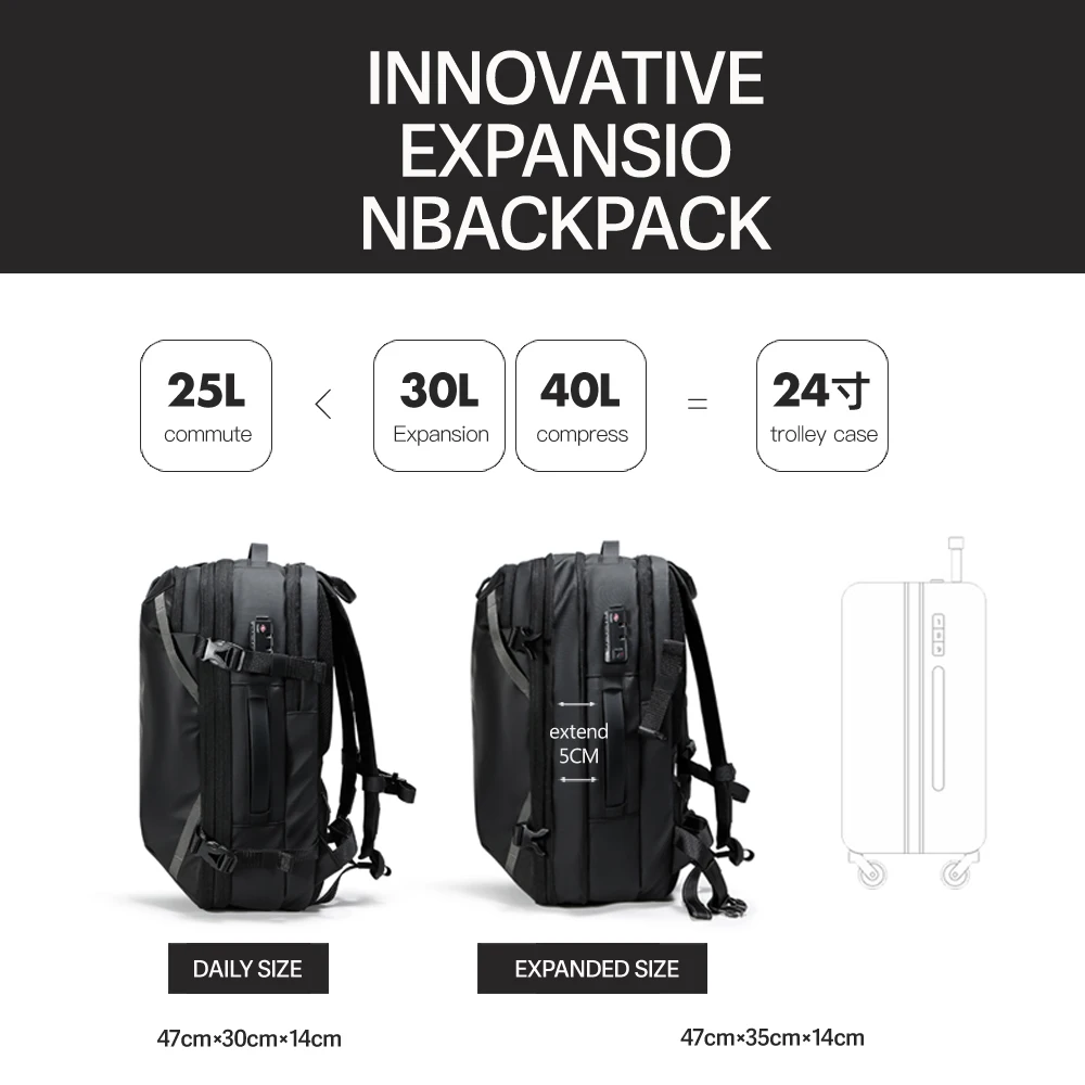 40L Expandable Travel Laptop Backpack – Vacuum Compression Business Carry-On for Men